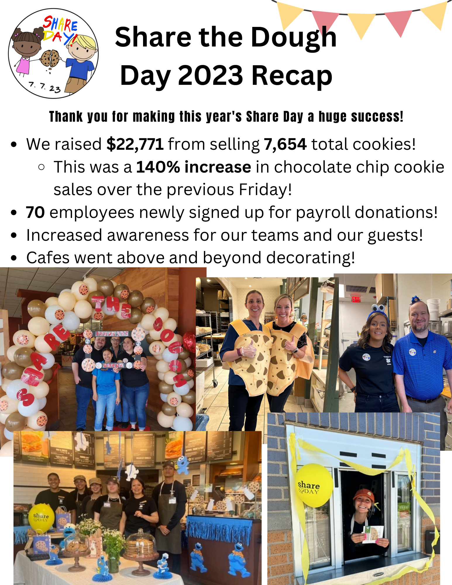 Share the Dough Day 2023 Recap! Rachel FlanaganJuly 13, 2023 Facebook0 Twitter LinkedIn0 Reddit Tumblr Pinterest0 0 Likes